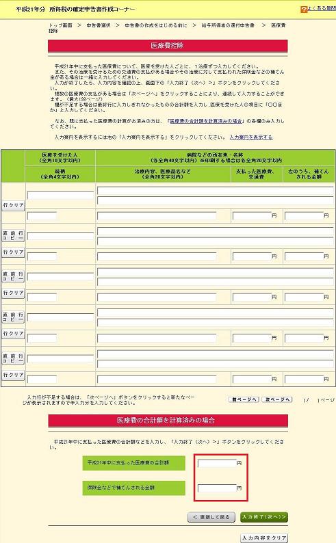 医療費をまとめた計算書(自由書記)で合計金額を算出しておいて・・
