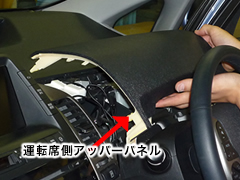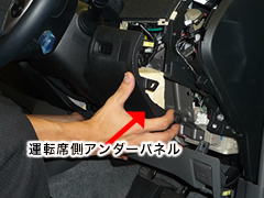 ネジ×2本を外し、運転席側アンダーパネルを外します。(ネジ×2、フック×6)