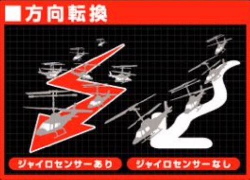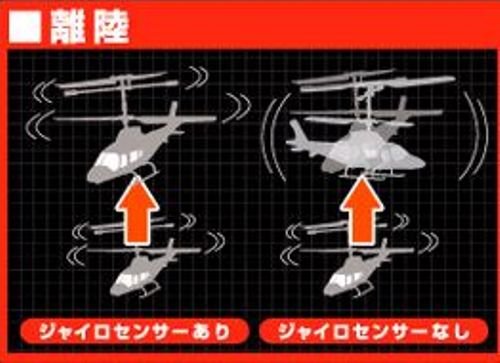 ジャイロセンサーがヘリコプターの回転を検出、機体の方向を自動調整、飛行姿勢を一定に保つ。直感的なレバー操作でスムーズな前進・後進、思い通りの方向転換、狙った場所へカンタン着陸。