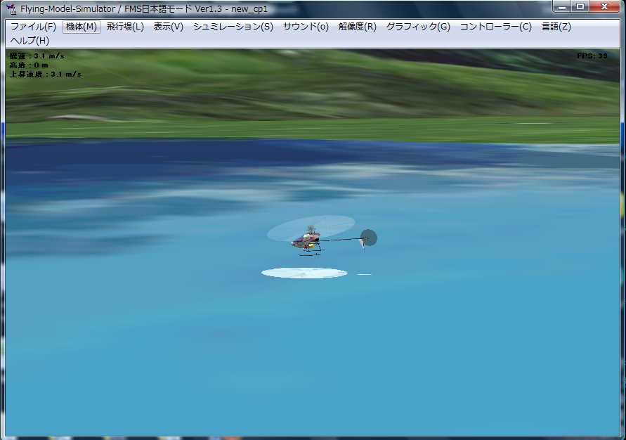 しかしヘリはシミュレートするパラメータが少ないようで、実物よりも安定しており、操縦も容易です。ヘリ初心者の基本的な練習としては、やらないよりはずっと役立つと思いますが、FMSでホバリングができても実物では思うようにできない、というケースも考えられます。バージョン7では風の設定ができないことも、屋外飛行の練習には物足りない点でしょう。