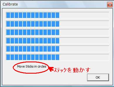 OKを押すと上図の様にステックを動かせと言って来るので、全てのステ