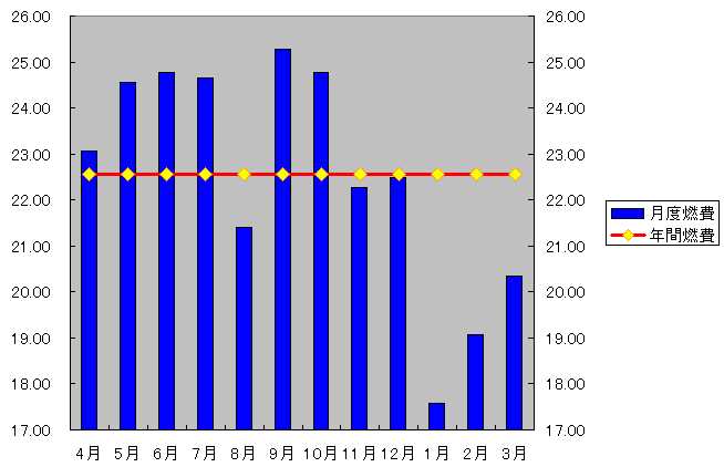 じゃ・・8月を除くと・・・22.91Km/Lと約23Km/Lの実力・・・でも冬季も苦手・・!