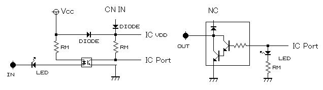 基本的には、入力にホトカプラーを使用し、出力には、ダーリントンのTrを使用しています。